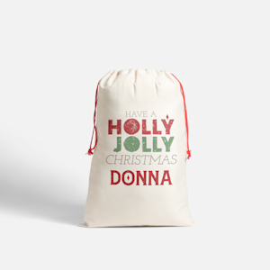Made of linen-look polyester fabric, Christmas sacks are sturdy enough to carry wrapped and unwrapped gifts. Customise your Christmas Santa sacks with a special message or a friend or family memberâs name, or create a design that will stand out at the foot of the bed or in front of the tree. And to ensure your presents stay secure, each personalised Christmas sack features a stylish red drawstring.