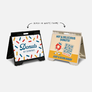 Need a sign that doubles as a space-saving hack? With small A-frames, you can make a statement and maximise your space. And with vinyl decals, you can peel, stick and switch up your message in minutes â perfect for promoting seasonal sales, events, limited offers and more. If duty calls somewhere else, just fold it, grab it and be ready to turn heads wherever you go next.